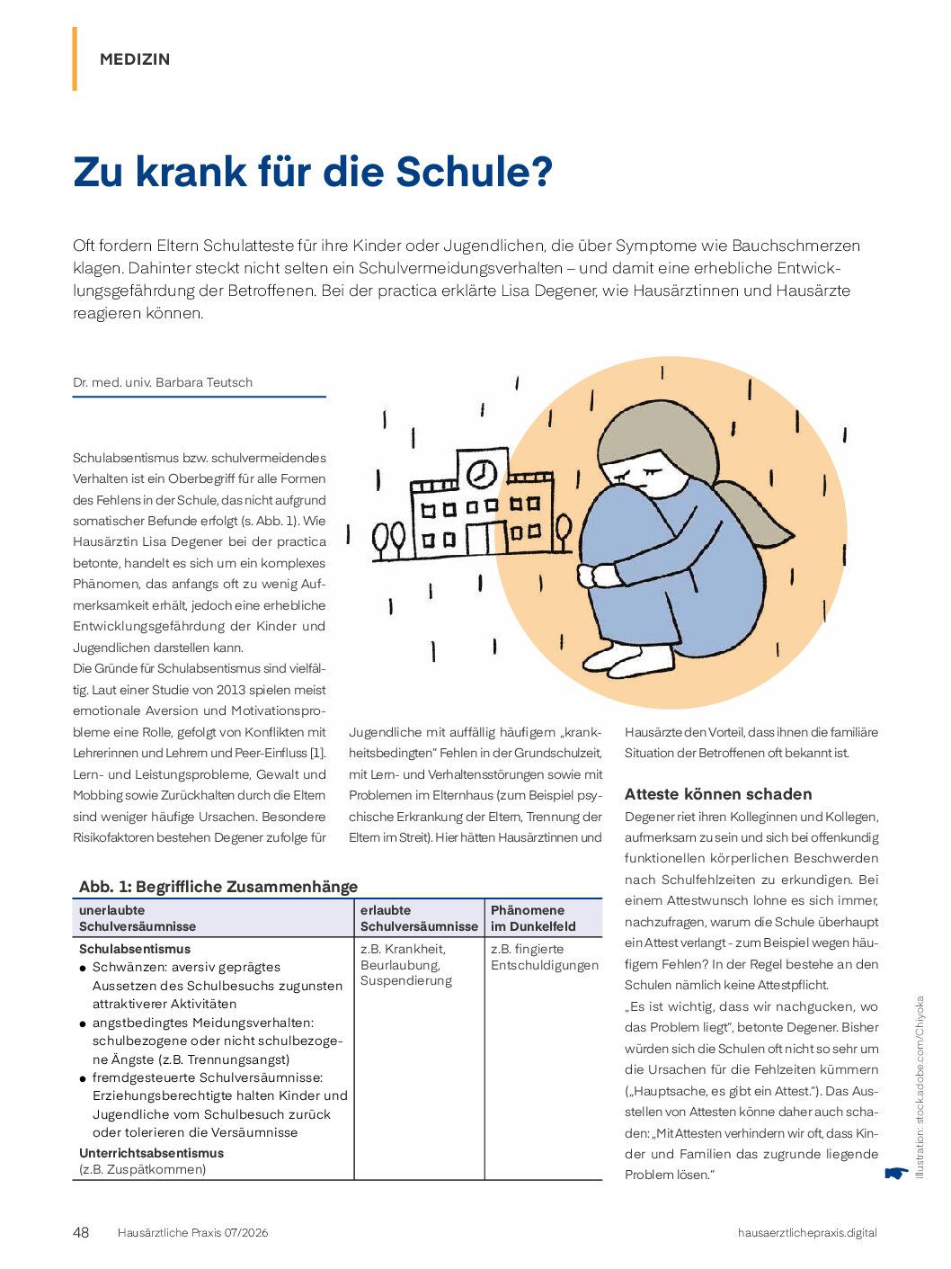 Oft fordern Eltern Schulatteste für ihre Kinder oder Jugendlichen, die über Symptome wie Bauchschmerzen klagen. Dahinter steckt nicht selten ein Schulvermeidungsverhalten – und damit eine erhebliche Entwicklungsgefährdung der Betroffenen. Bei der practica erklärte Lisa Degener, wie Hausärztinnen und Hausärzte reagieren können.